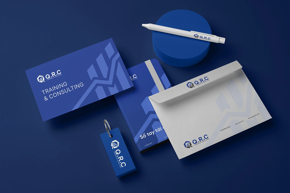 Điểm nhấn của Logo là chữ cái đầu Q của tên thương hiệu kết hợp với biểu tượng, biểu đồ tài chính tăng trưởng mang đến một thông điệp mạnh mẽ về sự kết nối liền mạch và không ngừng phát triển thể hiện cho lĩnh vực hoạt động của doanh nghiệp. Hình ảnh đỉnh núi và chữ Q.R.C là biểu tượng của sự hiện đại, gửi đến thông điệp rằng Q.R.C sẽ đồng hành và hỗ trợ cùng khách hàng leo lên đỉnh núi, đạt được mục tiêu và thành công trong các lĩnh vực. Ba chữ Q.R.C, viết tắt của quality, reputable, connection, rõ ràng truyền đạt giá trị cốt lõi của thương hiệu. Quality đại diện cho chất lượng, Reputable thể hiện uy tín, và Connection là sự kết nối chặt chẽ. Tên thương hiệu “Q.R.C - Nền tảng vững chắc, kiến tạo ước mơ!” cũng là một phần quan trọng của thông điệp, tôn vinh sức mạnh và khả năng kiến tạo của thương hiệu. Bộ màu sắc của logo Q.R.C, gồm ghi bạc và xanh dương, kết hợp một cách sáng tạo để truyền đạt ý nghĩa sâu sắc: ghi đen tượng trưng cho khó khăn và nỗ lực, xanh dương thể hiện sự yên bình và lòng tin trong hành trình, tất cả hòa quyện với bản mệnh để tạo ra một diện mạo độc đáo và ý nghĩa cho thương hiệu Q.R.C.