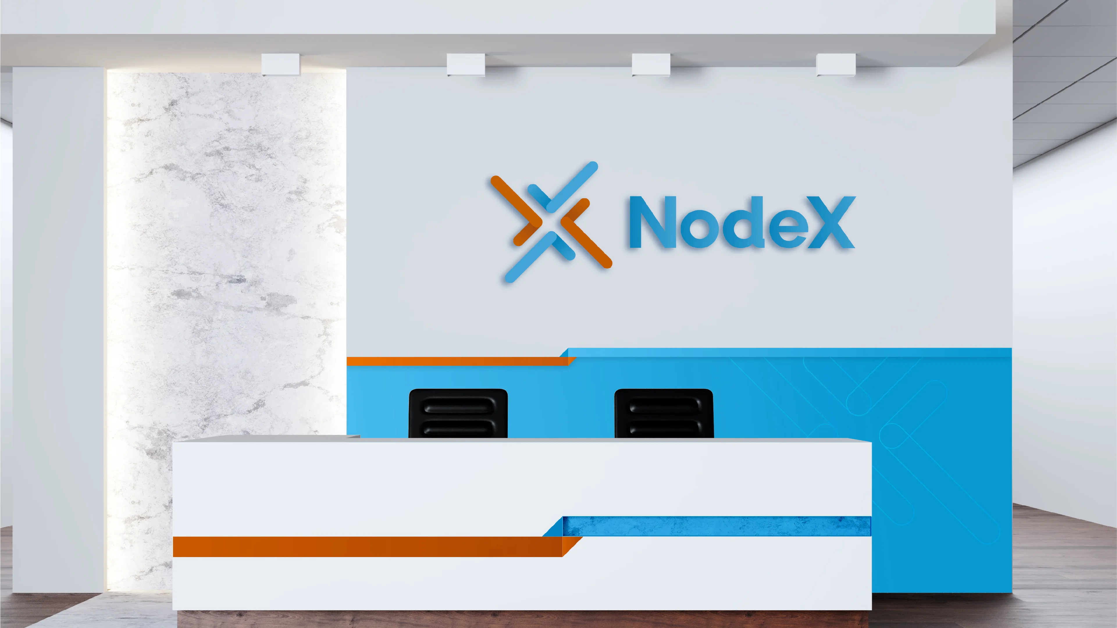 Node là điểm mấu chốt tạo liên kết với xung quanh, X là 10 hay có thể hiểu là nhiều, tượng trưng cho sức mạnh vượt trội và sự may mắn. Như vậy NodeX là nhân tố góp phần làm nên thành công của doanh nghiệp. Logo sử dụng tông màu xanh da trời đem lại cảm giác sự tin cậy, chắc chắn và tính bảo đảm, đồng thời tạo cảm giác thấu hiểu, khoáng đạt kết hợp với màu cam biểu trưng cho sự đam mê, hạnh phúc, sáng tạo, tràn đầy năng lượng, sự quyết đoán, thành công, cũng là biểu tượng của sức mạnh và sự bền bỉ