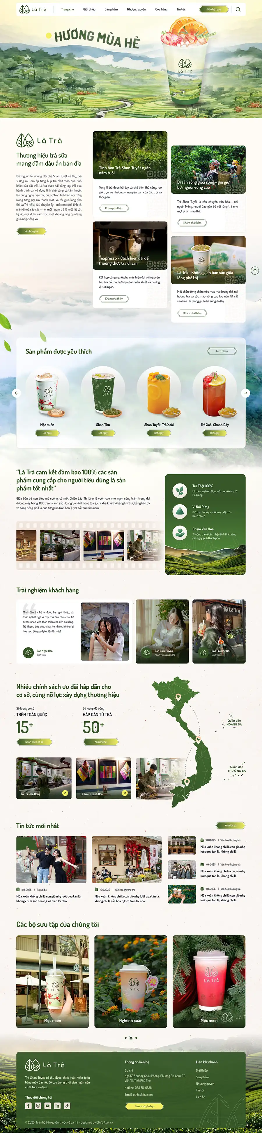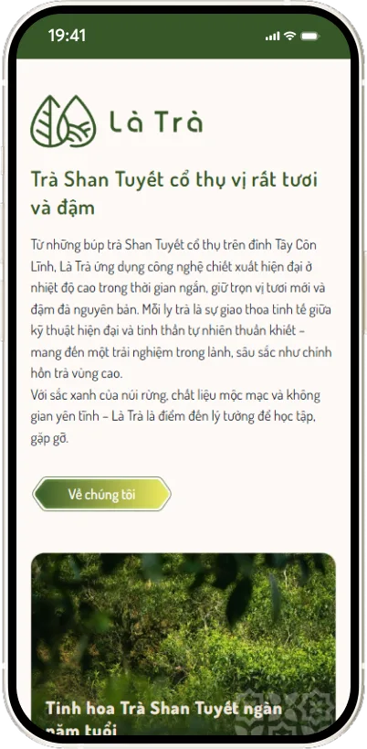 Là Trà là thương hiệu trà sữa mang màu sắc bản địa, khởi nguồn từ đỉnh Tây Côn Lĩnh – nơi những cây trà Shan Tuyết cổ thụ hàng trăm năm tuổi vươn mình trong sương núi. Chúng mình sử dụng công nghệ chiết xuất hiện đại ở nhiệt độ cao, trong thời gian ngắn, để lưu giữ trọn vẹn hương vị tươi mới – đậm đà – nguyên bản của trà cổ thụ.